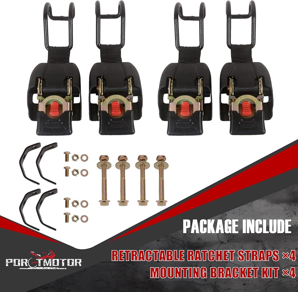 Retractable Boat Gunwale Transom Tie Down Straps with U-Hook, 2x43 Inch Trailer Straps, 3000LBS Break Strength Bolt-on Ratchet Tie-Downs for Boat and Jet Ski (4 Pack)