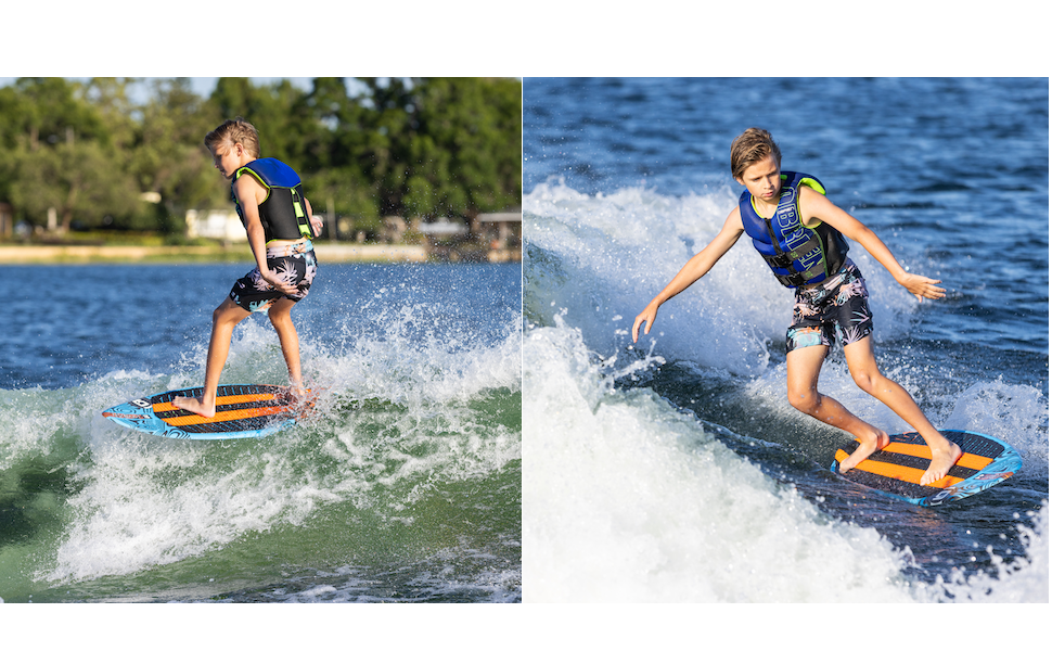 Lightweight Skim Style Shape – A thin profile and wide tail allow young riders to generate speed easily while maintaining balance and confidence on the water.