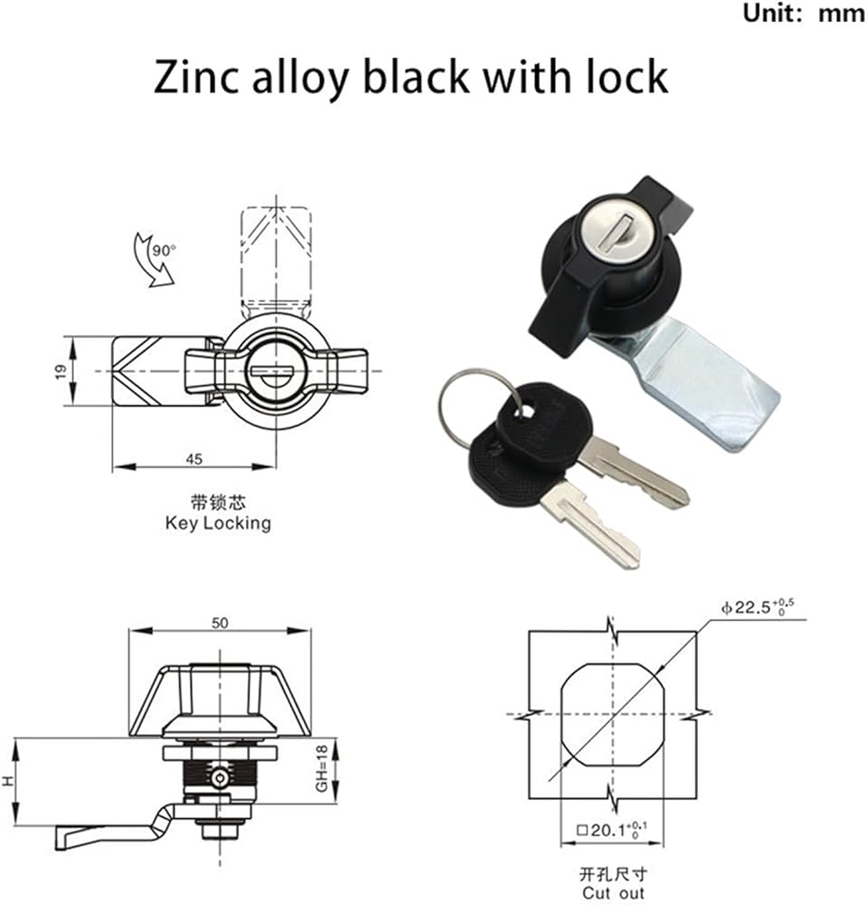 Zinc Alloy Cylindrical Tongue Lock Industrial Electrical Equipment Distribution Box Handle Cabinet Handle 1Pcs