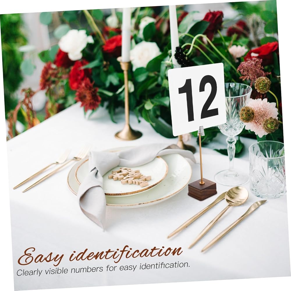 numbered cards for tables Designed for versatility, they can be used as table number markers at weddings, parties, and restaurants.wedding table signs Enhance your event's organization with these elegant plastic number signs.table number decorations The sturdy material provides longevity, while the stylish appearance adds of sophistication to any setting