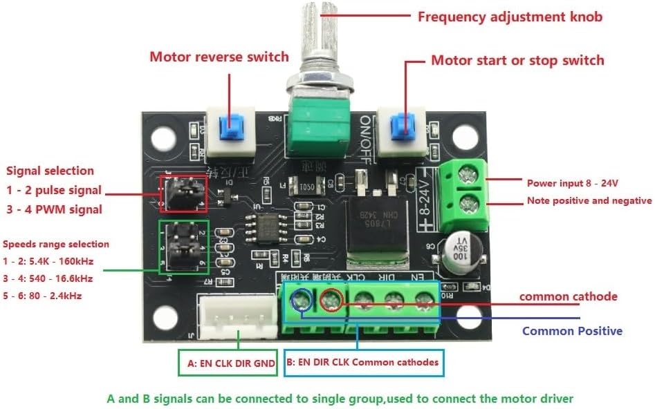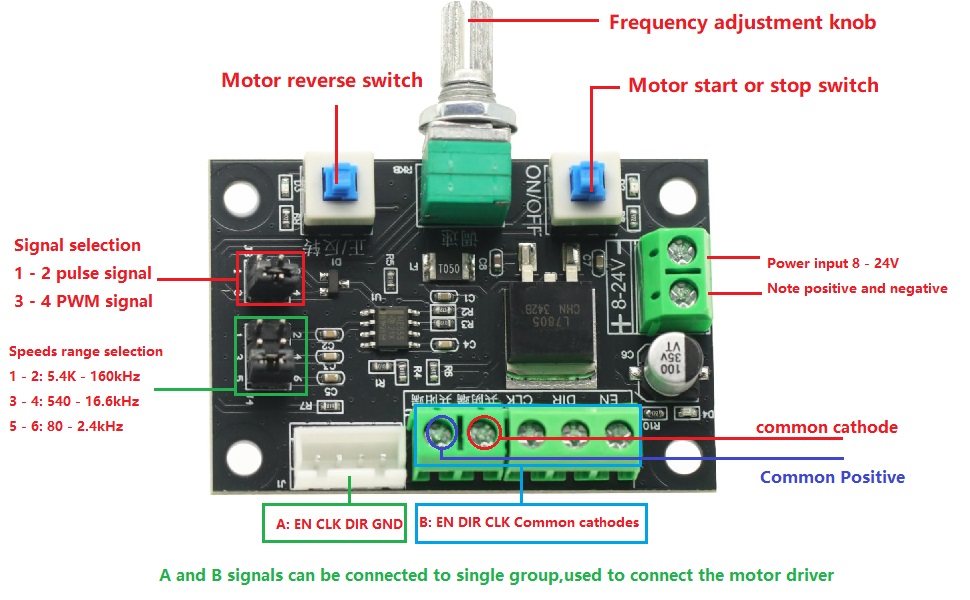 3, the controller has high 5.4k-160khz, middle 540-16.6khz, low 80-2.4khz total of 3 kinds of low frequency signal can be used to select the jumper.