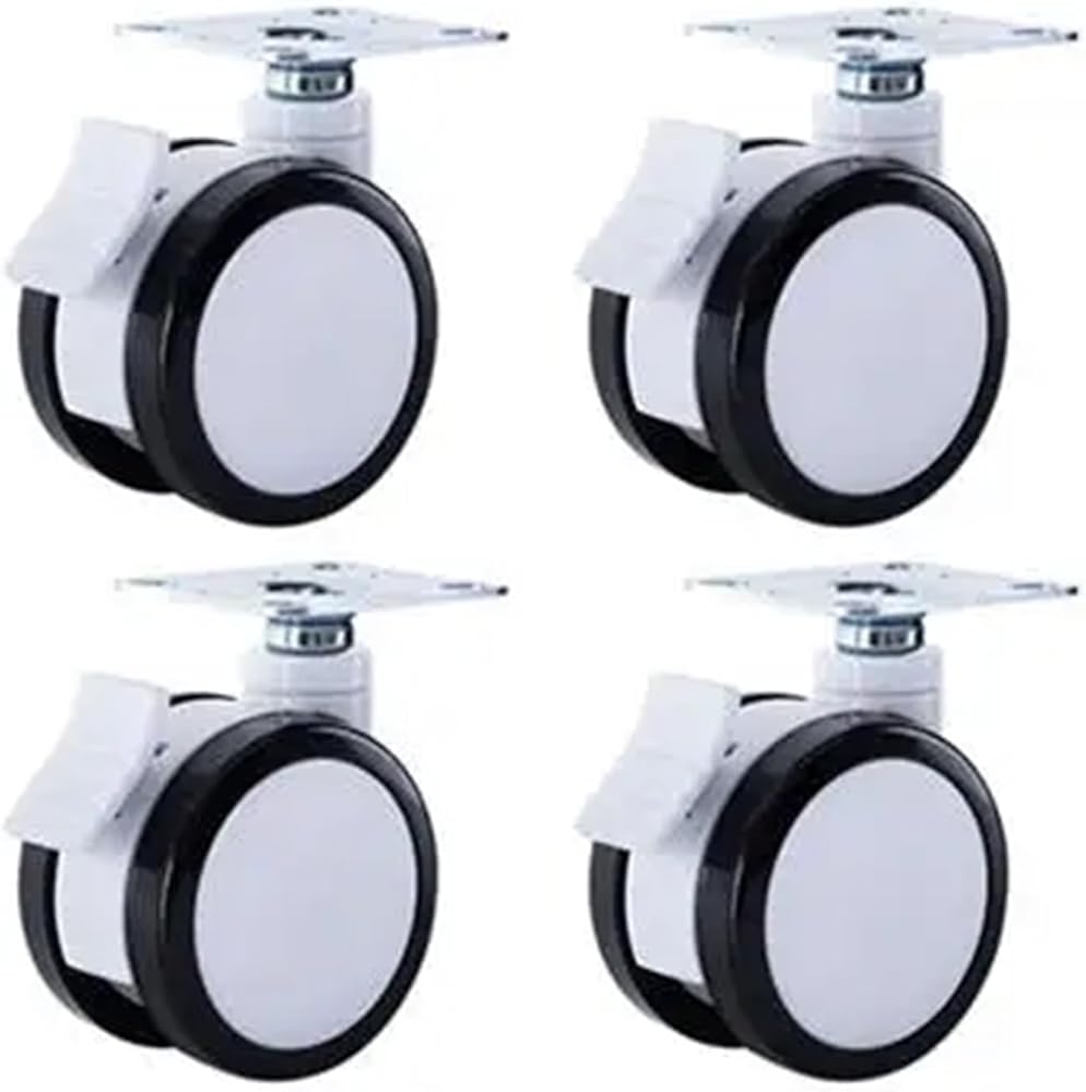 4 Pack of 4-inch casters Silent Black and White Double Wheels(Brake)