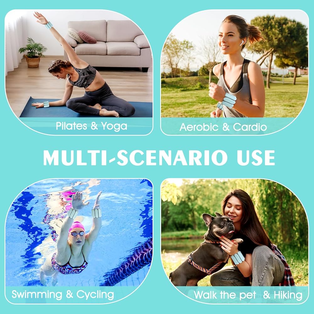 Wrist weights set of 2 can to adapt users of all sizes, perfect choice for yoga, running, walking, fitness, swimming, aerobics, pilates. Used it make your sport more productive, improve exercise effectiveness and ignite your fat.