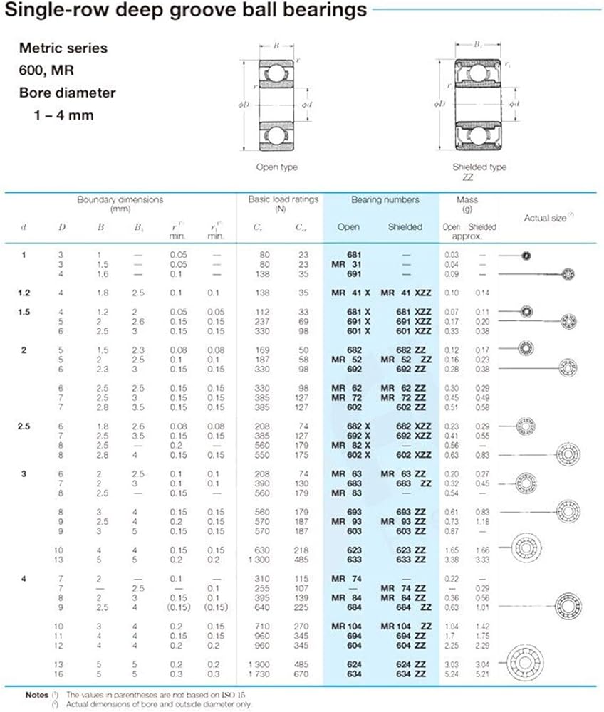 • Inner (d): 2 mm; Outer (D): 6 mm; Width (B): 2.5 mm