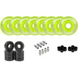 Includes 8 72mm Wheels, 16 Hybid Ceramic Bearings, 8 8mm Spacers, and 8 6mm Stepped Spacers (You only need 1 set of spacers depending on your skates, we inclue both as a courtesy).