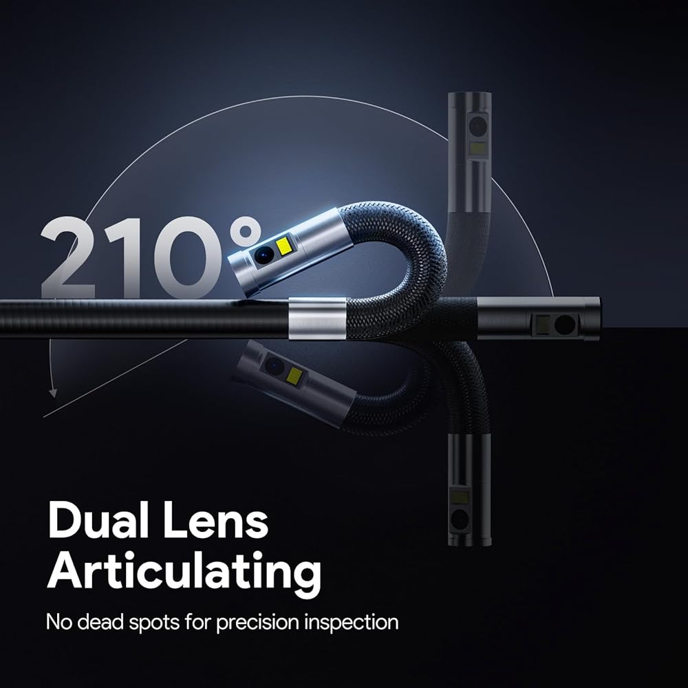 Dual Lens Articulating Borescope, DEPSTECH Endoscope Camera with Light, Articulated Probe, Flexible Snake Inspection Camera for Wall, Automotive Engine Inspect-4.92FT