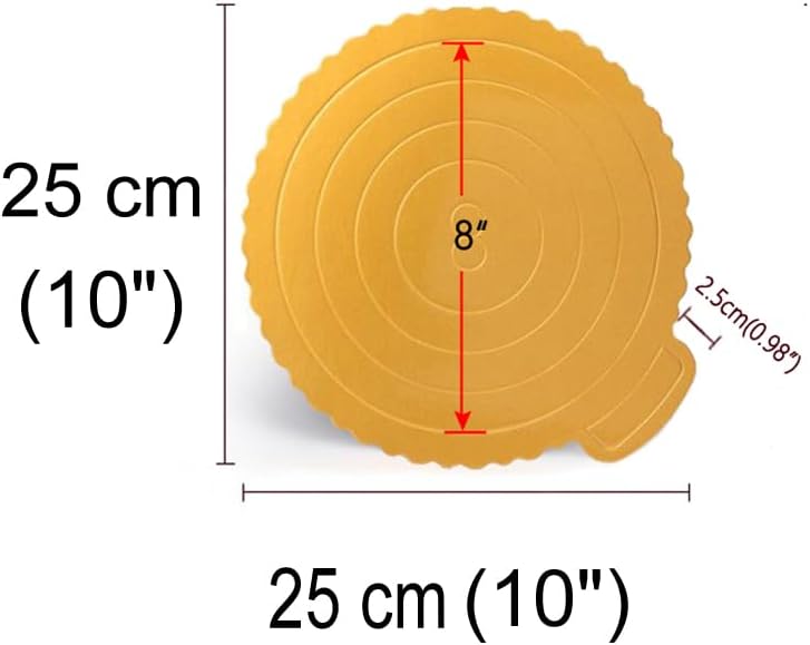 What You Will Get: 25 pack 10" cake boards which is a perefect size for 8" or 9" cake. This cake board is for professional pastry chef cakes or family party use. We have two shapes (Round and Square) and two color (White and Gold) for you to choose. They are suit your different needs, you can have fun making them yourself and impressing your friend and family