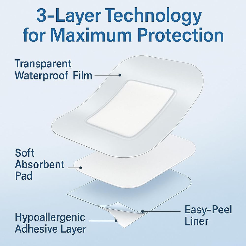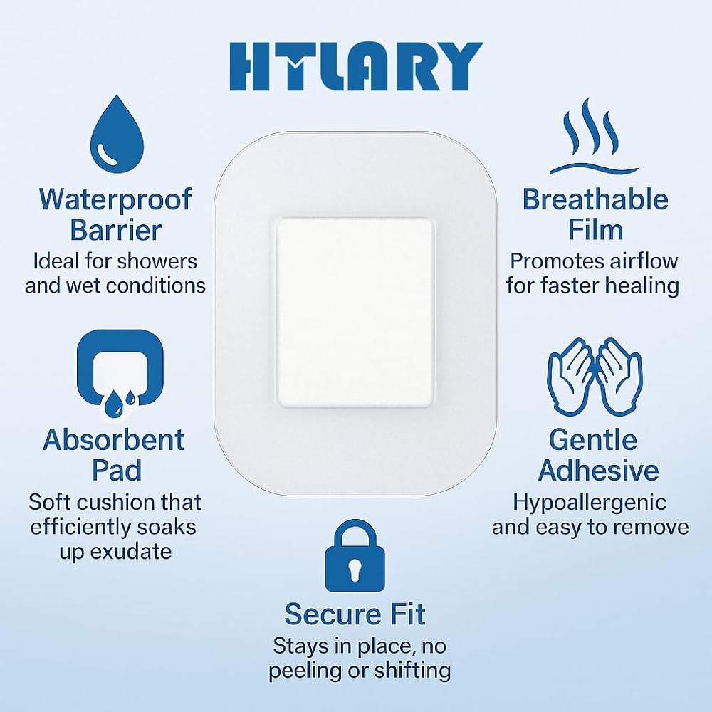 Htlary Transparent Film Dressing is designed to provide reliable waterproof and breathable protection for various types of minor wounds. Each dressing measures 2.7 x 4 inches and comes individually packaged for maximum hygiene and convenience. With strong medical-grade adhesive, hypoallergenic and latex-free materials, and excellent flexibility, it conforms comfortably to different body parts, including joints and curved areas. Ideal for use on post-operative wounds, abrasions, skin grafts, minor burns, and more, Htlary dressings support a moist healing environment while allowing you to move freely—even during showers or daily activities. Each box includes 50 sterile, single-use dressings, perfect for both home and professional care.