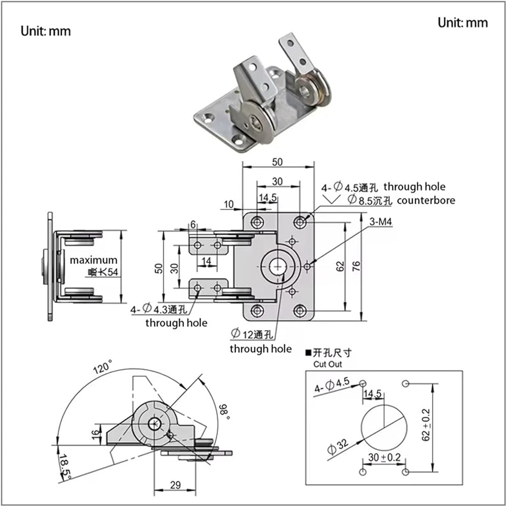 304 Stainless Steel Damping Dual-Axis Torque Hinge for Display Base and Automation Equipment Screen Applications 1Pcs