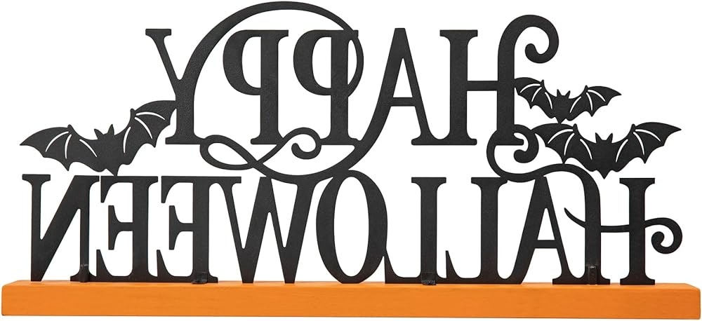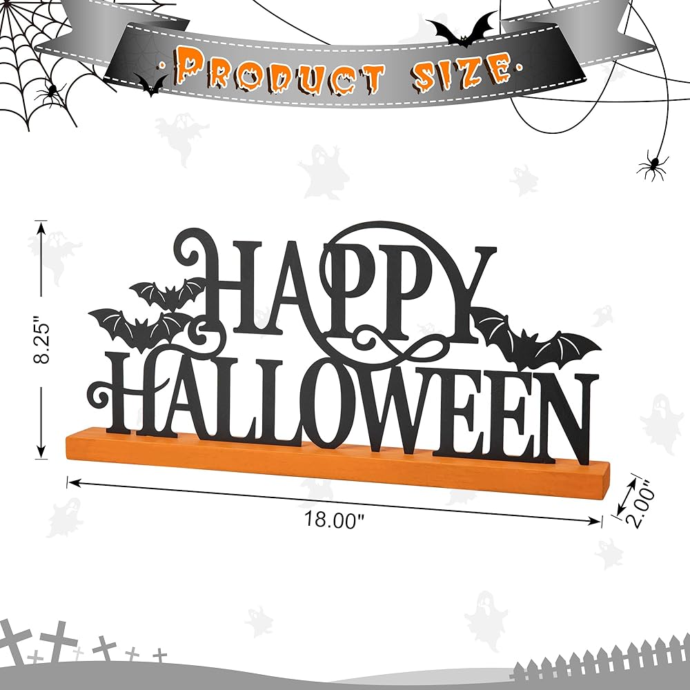 💀 MATERIAL & DIMENSION - This word sign is made of Iron and MDF base, durable and sturdy, offers rustic distressed feel. The HAPPY HALLOWEEN word sign measures 18”L X 2”W X 8.25”H, designed to stand up by itself. Wood letters come attached with a bar base for easy placement and firm stability.