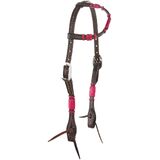 WD TackHot Pink Rawhide Rope Tooled Single Ear HeadstallTapered Bit Tie Ends Heavy OiledStainless Steel Cart BucklesTurquoise Dyed RawhideIdeal for horse owners that have a passion and appreciation for horse tack that features traditions of rawhide braiding artistryProduct Number: WD-RRSEH-HPThe WD Tack Hot Pink Rawhide Rope Tooled Single Ear Headstall blends functionality with traditional Western artistry, featuring a rope-tooled design crafted from oiled leather and accented with hot pink dyed rawhide. It is enhanced with brown stitching, tapered bit tie ends for durability, and stainless steel cart buckles for secure and adjustable sizing, making it suitable for various horse head sizes. A rawhide shoo fly tassel completes the classic Western look, making this headstall an excellent choice for horse owners who appreciate the craftsmanship and tradition of rawhide braiding. Product Number: WD-RRSEH-HP