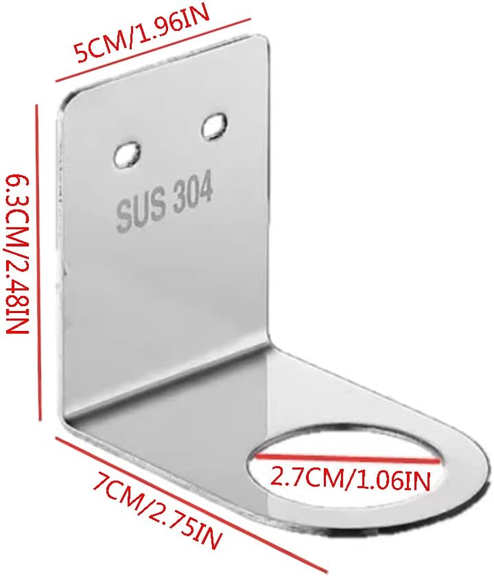 Soap dispenser wall mount size: 7.3x5.3x6cm/2.87x2x2.36in. Large hole inner Diameter: Approx 3.3cm/1.3in.Small hole inner Diameter:Approx 2.7cm/1.06in.