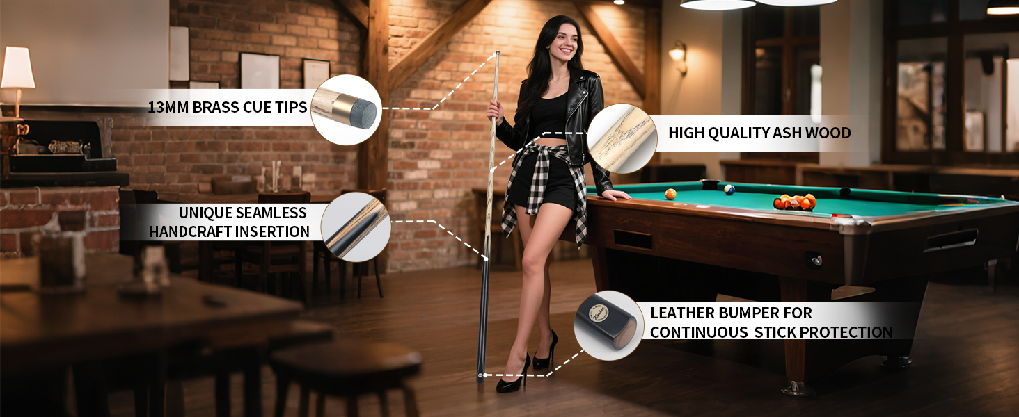Exceptional Durability: Pool sticks for adults and ash wood is renowned for its high strength and hardness. Our ash wood pool cue can withstand the rigors of intense play, resisting dents and scratches, ensuring it serves you well for a long time