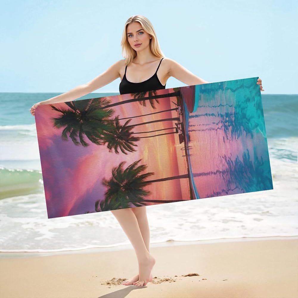 Transform your beach experience with this stunning tropical island beach towel featuring a breathtaking aerial view design. The vibrant turquoise waters and lush palm-covered island create an eye-catching paradise scene that brings vacation vibes wherever you go. Crafted with fine stitching and premium edge wrapping, this towel combines style with durability. The soft, highly absorbent fabric ensures quick drying after swimming or lounging, while its versatile size makes it perfect for the beach, pool, or as a decorative throw. The towel's high-quality digital printing maintains its vivid colors through multiple uses and washes. With its practical features including strong water absorption and UV protection, this towel is both functional and fashionable. It's easy to store and transport, making it an ideal companion for all your summer adventures. The towel's construction ensures it can withstand frequent use while maintaining its softness and absorption properties. Perfect for beach outings, pool parties, or adding a tropical touch to your bathroom decor.