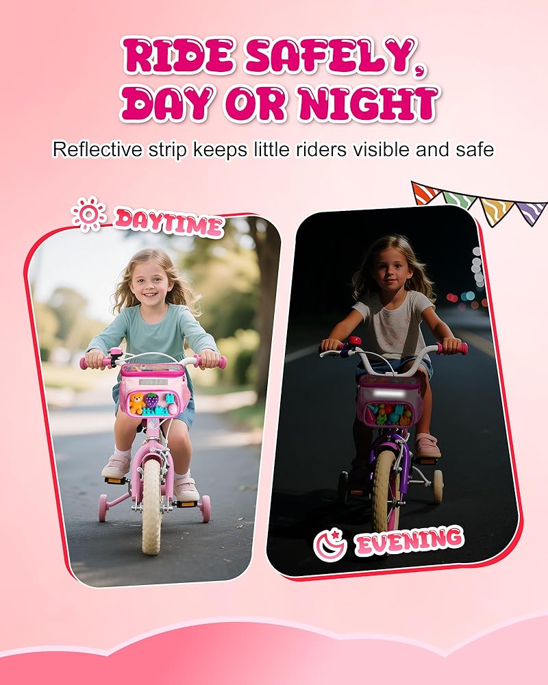 The spacious interior is perfect for holding toys, snacks, or a kids bike water bottle holder. A built-in mesh bag helps organize small items, while the durable material ensures it holds up through rough play and all-weather rides.