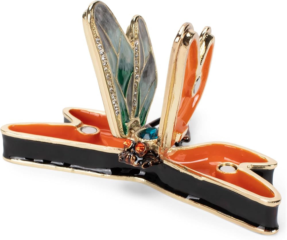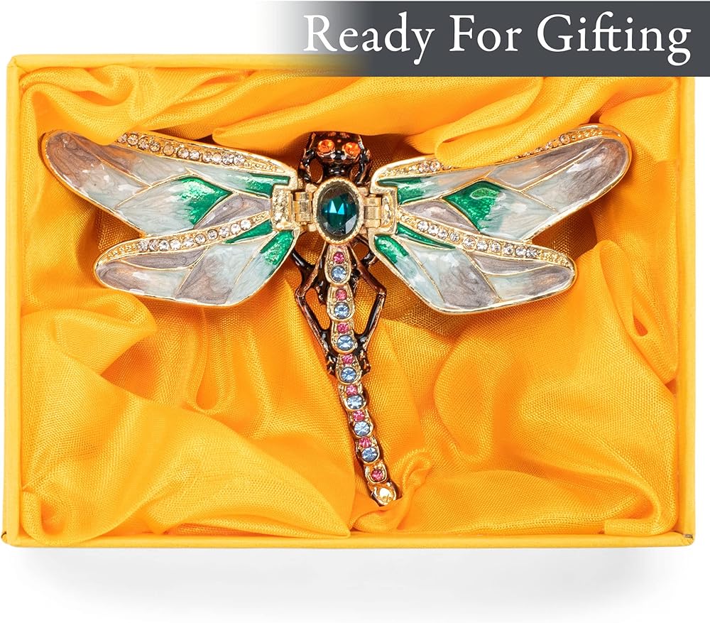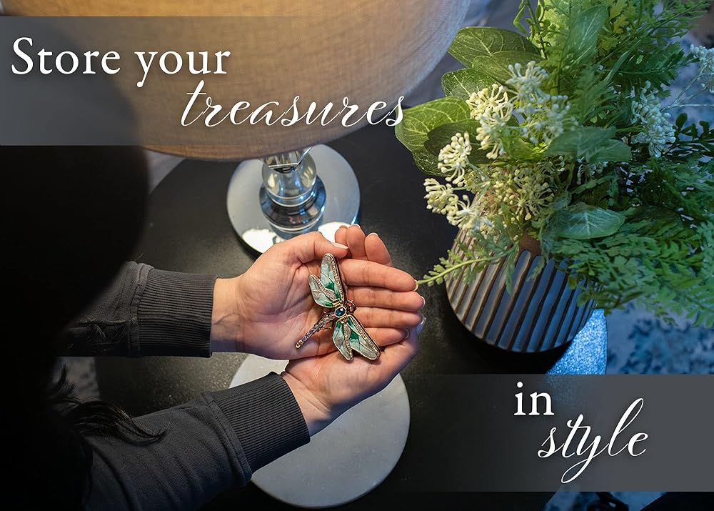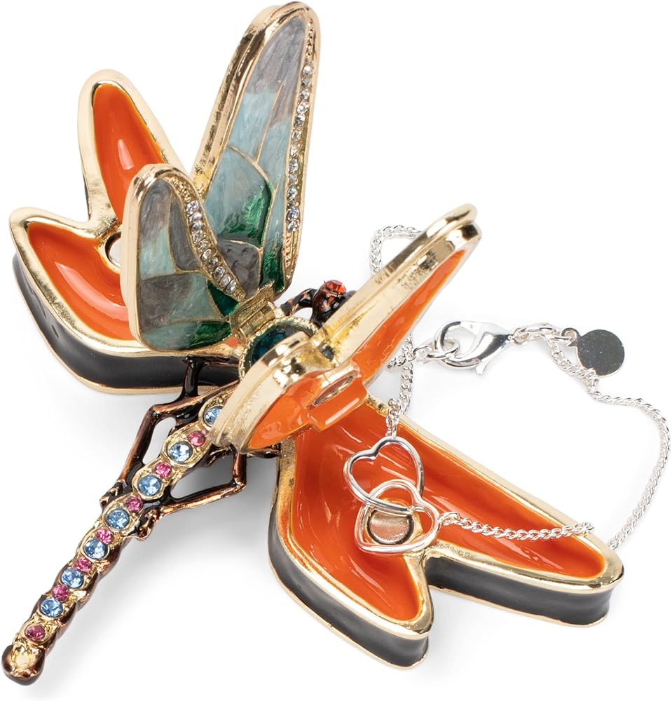 Features a beautiful design of a dragonfly; Designed to open to reveal a small compartment that can store your small treasures