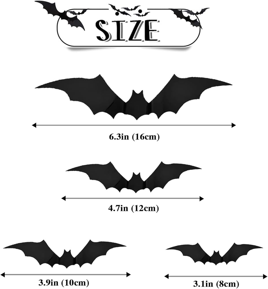 288 قطعة من ديكورات الهالوين خفافيش ثلاثية الأبعاد، ديكورات الهالوين في الهواء الطلق في الأماكن المغلقة، 4 مقاسات مختلفة لديكور الهالوين ملصقات جدارية لتزيين الهالوين، خفافيش لتزيين الهالوين لغرفة النوم، خفافيش مخيفة لحفلات الهالوين