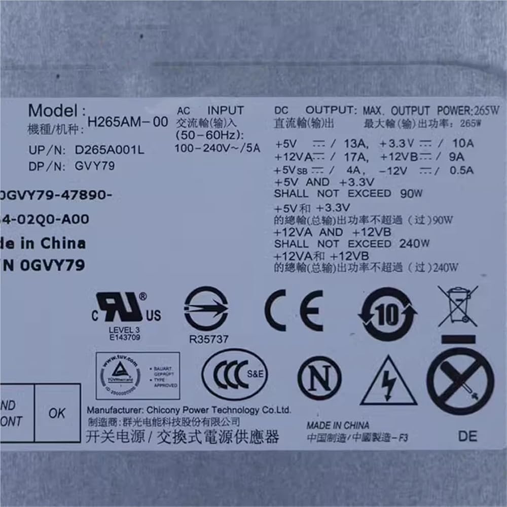 265W PSU For OptiPlex 390 790 990 3010 9010 7010 MT 260 270 3900 620 660 3847 Power Supply AC265AM-00