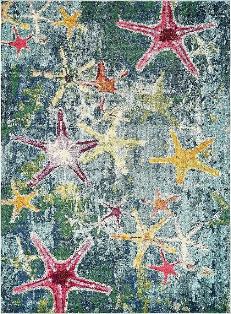 SUMMERTIME WARMTH: Bring the sea indoors with a vivid multicolor starfish motif from the marine-inspired collection. Available in various shapes and sizes, you can easily greet each day with energizing reminders of your favorite coastal memories!