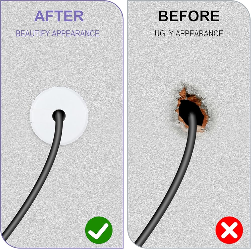 【Widely Compatible】: The white wall hole cover, designed for different cable cord diameters, can be used on a wide range of walls and desks in homes and offices. Whether it's standard wires, audio cables, or security system cables, these cable grommets for wall holes provide effective protection and a neat wiring solution