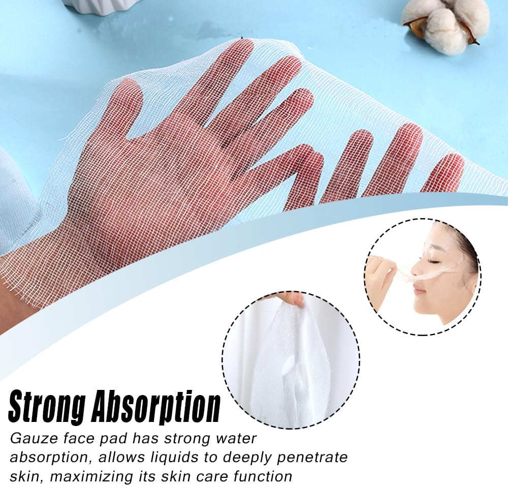 【Strong Absorption for Enhanced Skin Care】: The gauze face pad has strong water absorption capabilities. This enables liquids to deeply penetrate the skin, enhancing its skin care function. Whether you're using a toner, essence, or moisturizer, the gauze pad helps to ensure that the product is fully absorbed.