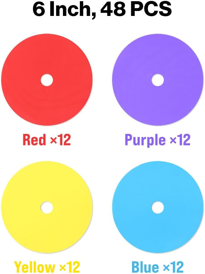 Japard Flat Cones, 48 Pcs 6 Inch Spot Markers, Flat Soccer Cones, Field Court Markers, Soccer Disc, Practice Cones, Soccer Training Equipment, Agility Practice, Football