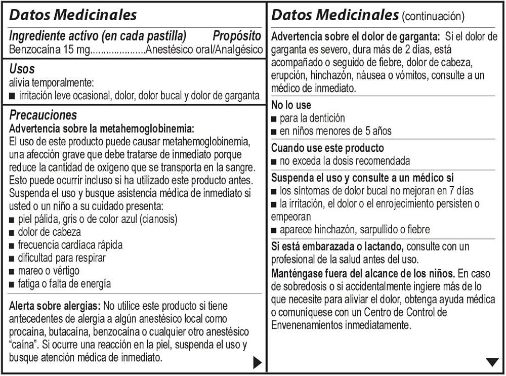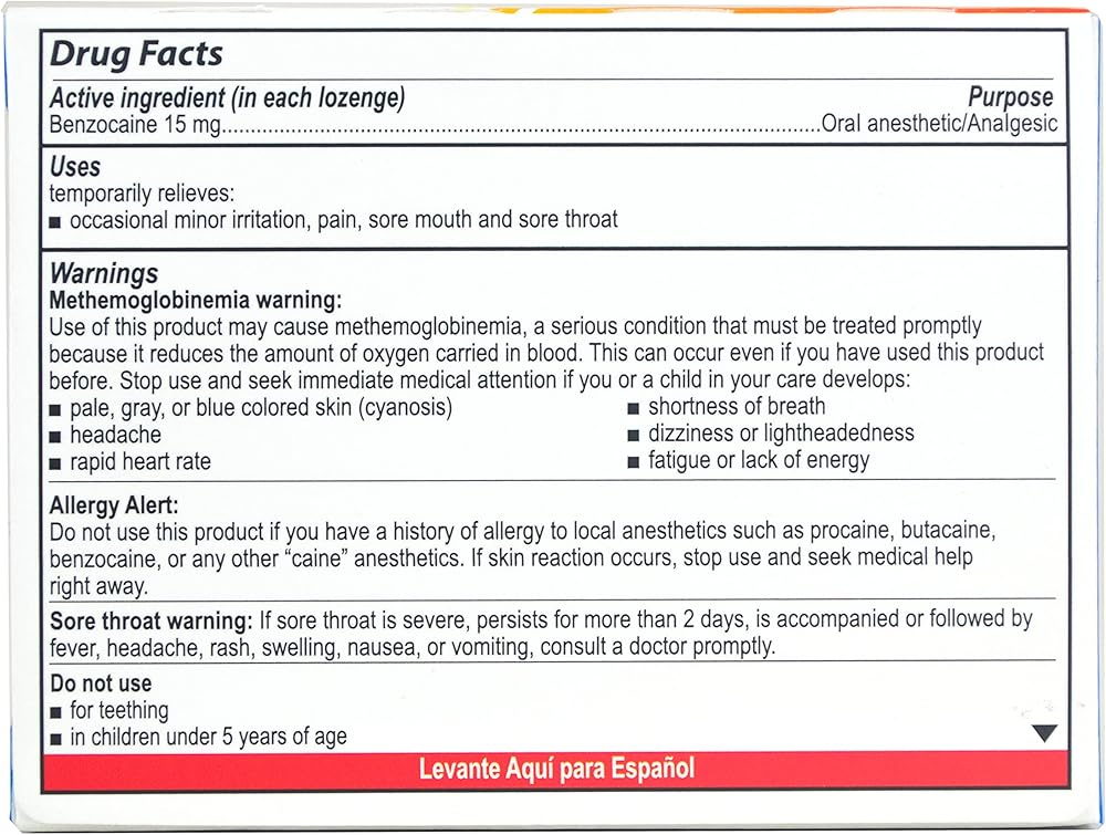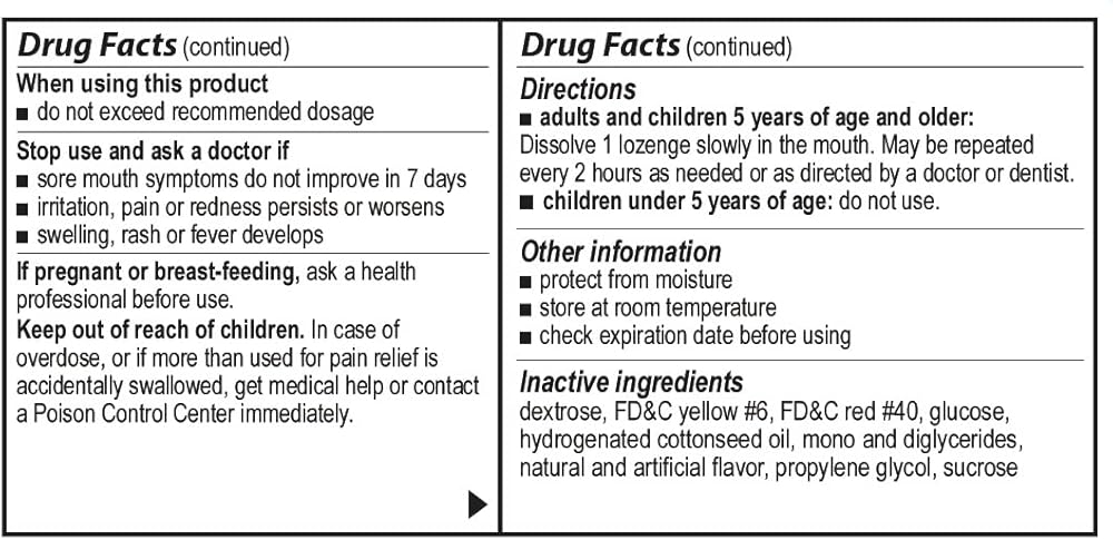 Directions: For Adults and children 5 years of age and older, dissolve 1 lozenge slowly in the mouth. May be repeated every 2 hours as needed or as instructed by your dentist or physician