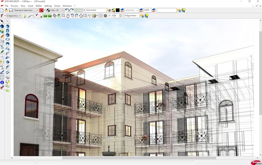 Directly realizable templates for architecture, electrical engineering, mechanical engineering , Extensive toolbox of the common 2D modelling functions