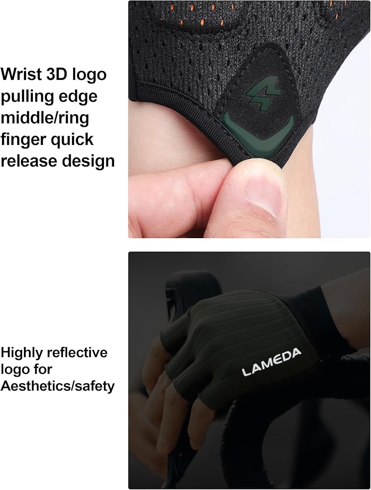 XRD Shock-Absorbing Palm Pads--LAMEDA cycling Gloves has Experience enhanced comfort and reduced hand fatigue during long rides with advanced XRD cushioning technology, designed to absorb vibrations and improve grip.
