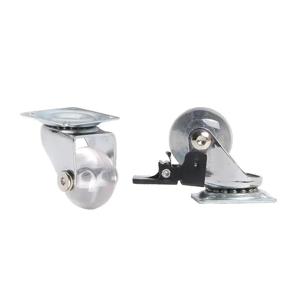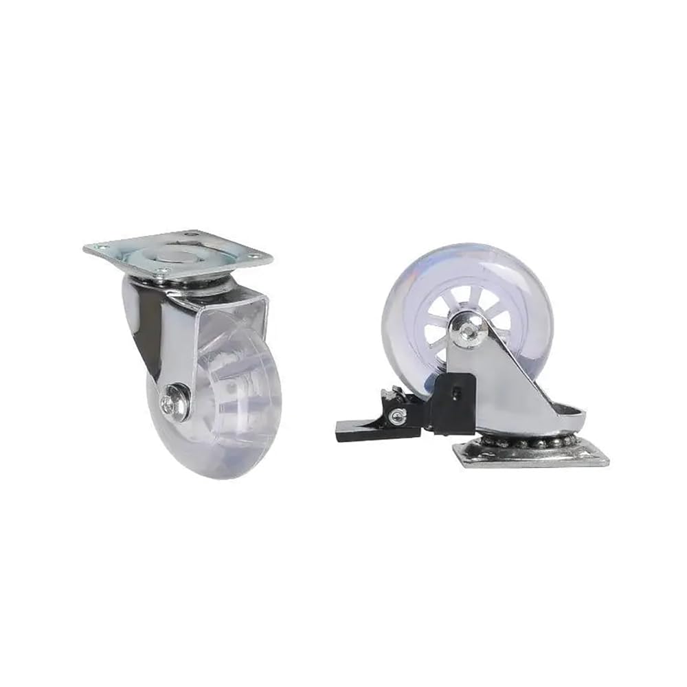 Pack of 4 3-inch casters PU transparent crystal wheel with brake furniture multi-specification cabinet pull