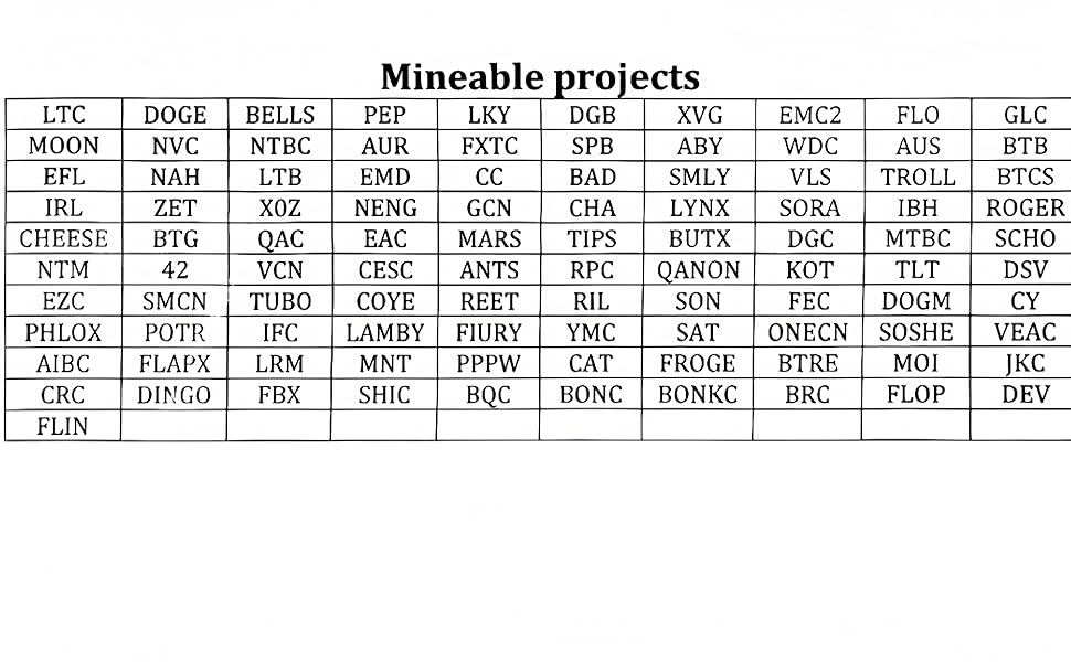 Coins:The crypto miner and Asic miner can mine a wide variety of cryptocurrencies ,Including LTC,DOGE,BEL,LKY,PEP,XVG,DGB,EMC2,FLO,GLC.