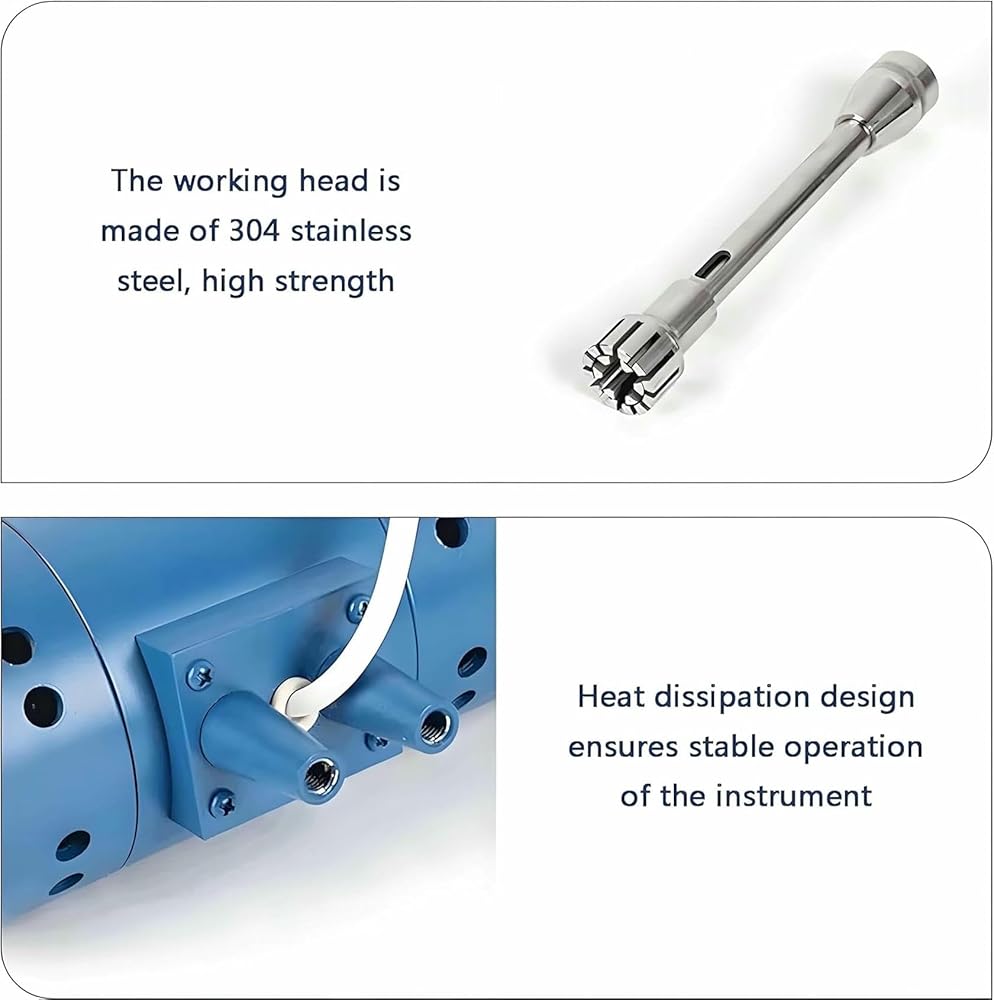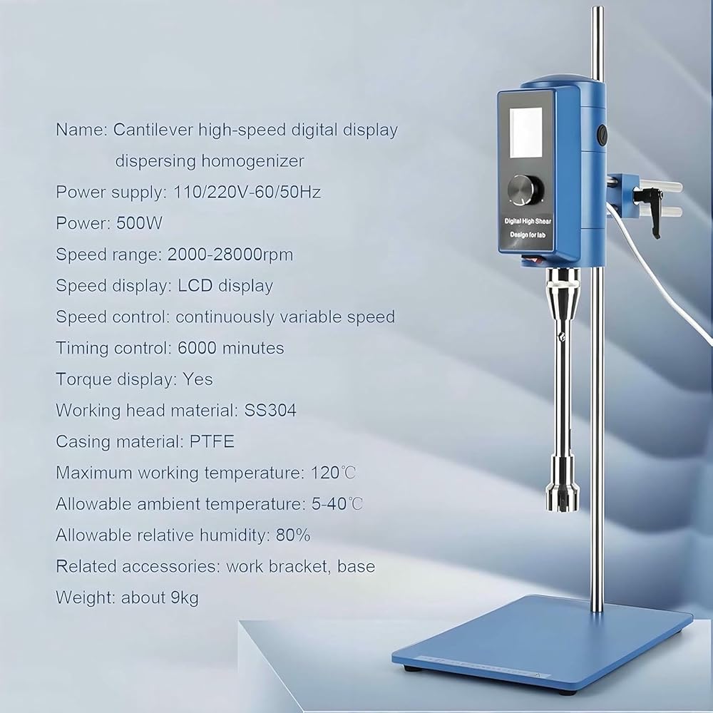 • 【HIGH SPEED ​​HOMOGENIZER】High-speed homogenizing emulsifier adopts high-power DC carbon brush motor, running state is stable, has high speed and strong performance. Idle speed range 2000-28000 rpm, use the speed knob for stepless speed regulation, high working efficiency, the experiment application range is wide.