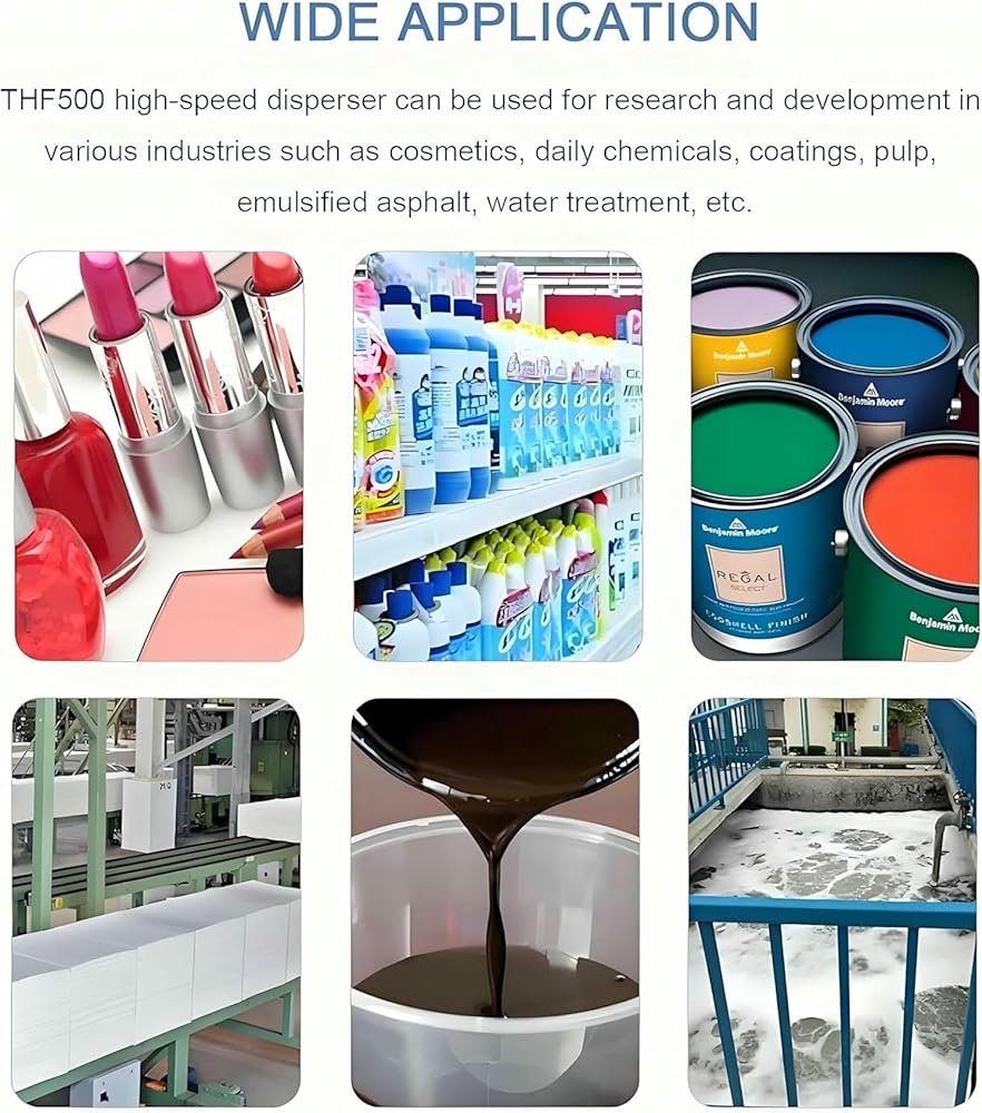 • 【APPLICATION】Lab Homogenizer Emulsifier Disperser can decompose macromolecules into small molecules. It is used for research and development in cosmetics, coatings, pulp, daily chemicals, emulsified asphalt, water treatment and other industries. Suitable for fine mixing processes such as emulsification, dispersion, shearing and homogenization.