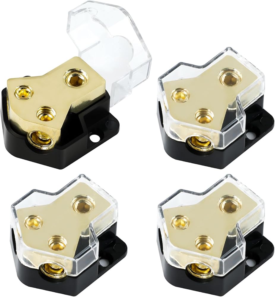 【Professional 2-Way Power Distribution】 This 12V power distribution block features dual outputs with 0/2/4 gauge input and 4/8/10 gauge output compatibility, perfect for car audio systems, LED light bars, and off-road vehicle accessories. The heavy-duty zinc alloy construction ensures optimal current flow for high-power applications.