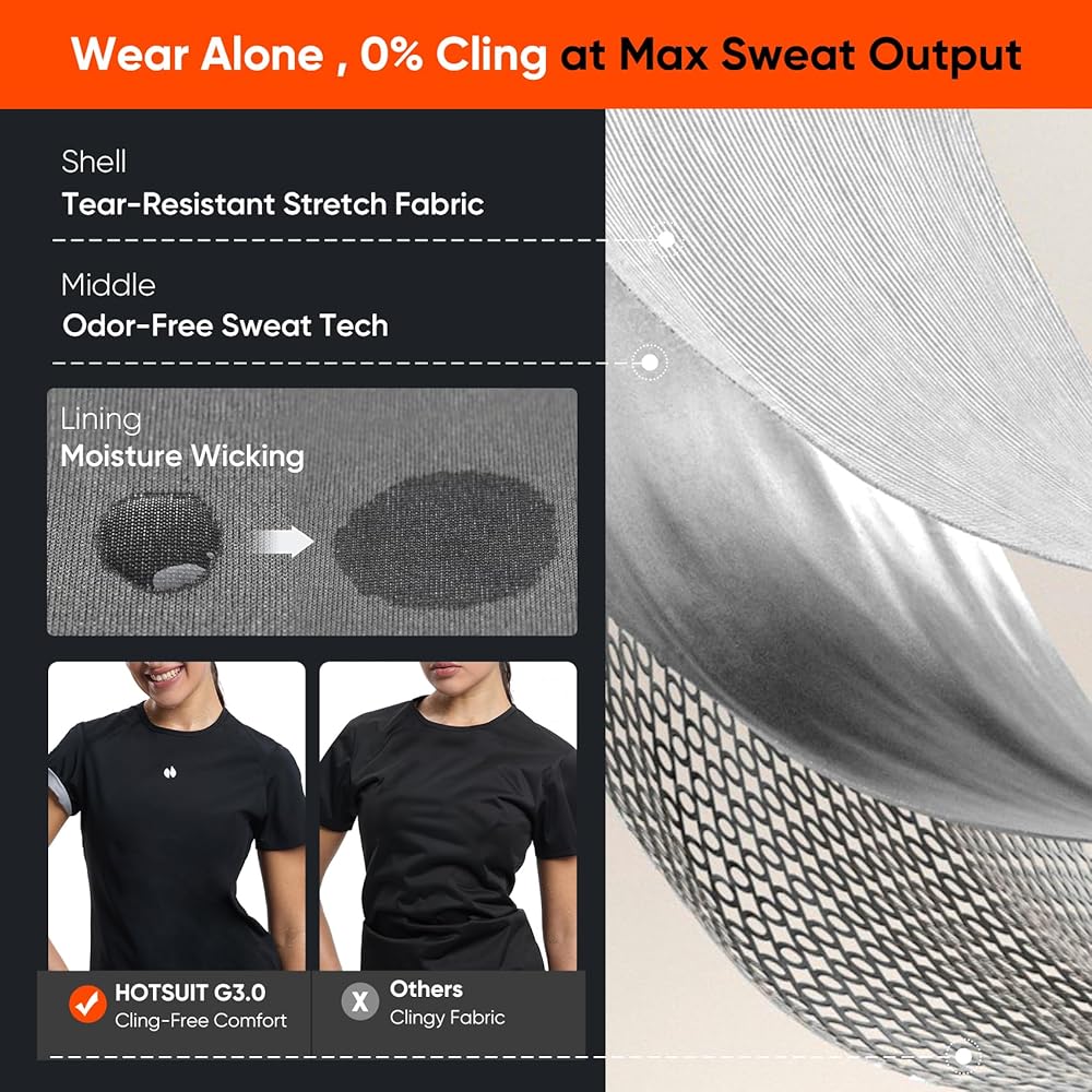 High-quality fabric: Our sauna short sleeves use three-layer composite silver film fabric to quickly increase your body temperature and improve fat burning efficiency. No odor, no irritation to the skin, lightweight and tear-resistant fabric, machine washable and dryable Efficient Movement: The fabric has better compression, which produces more sweat and helps your body lose weight. The sweating effect during exercise is 5 times higher than regular clothing, and it does not stick to the skin after exercise Special design: Raglan sleeve design, accommodating different body shapes, hem arc design, reducing exercise friction and making it more comfortable Combination Wear: This sweatshirt is just like a normal T-shirt, you can wear it to the gym, cycling, basketball, fishing, shopping. It is lightweight and easy to carry, it will not take up space, you can easily put it in your bag Multi-scenario application: suitable for warm-up before exercise, aerobic exercise, yoga, Pilates, strength training, HIT exercise, fitness, fighting, MMA and other comprehensive sports. Daily outdoor jogging, office, driving or warm wear