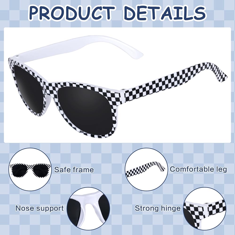 Our black white checker sunglasses are made of high-quality plastic, lightweight and strong, do not put extra pressure on the bridge of the nose, are durable, comfortable to wear, reduce bright sunlight, and can be used for a long time, a must for boys and girls on their daily adventures