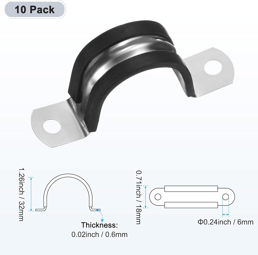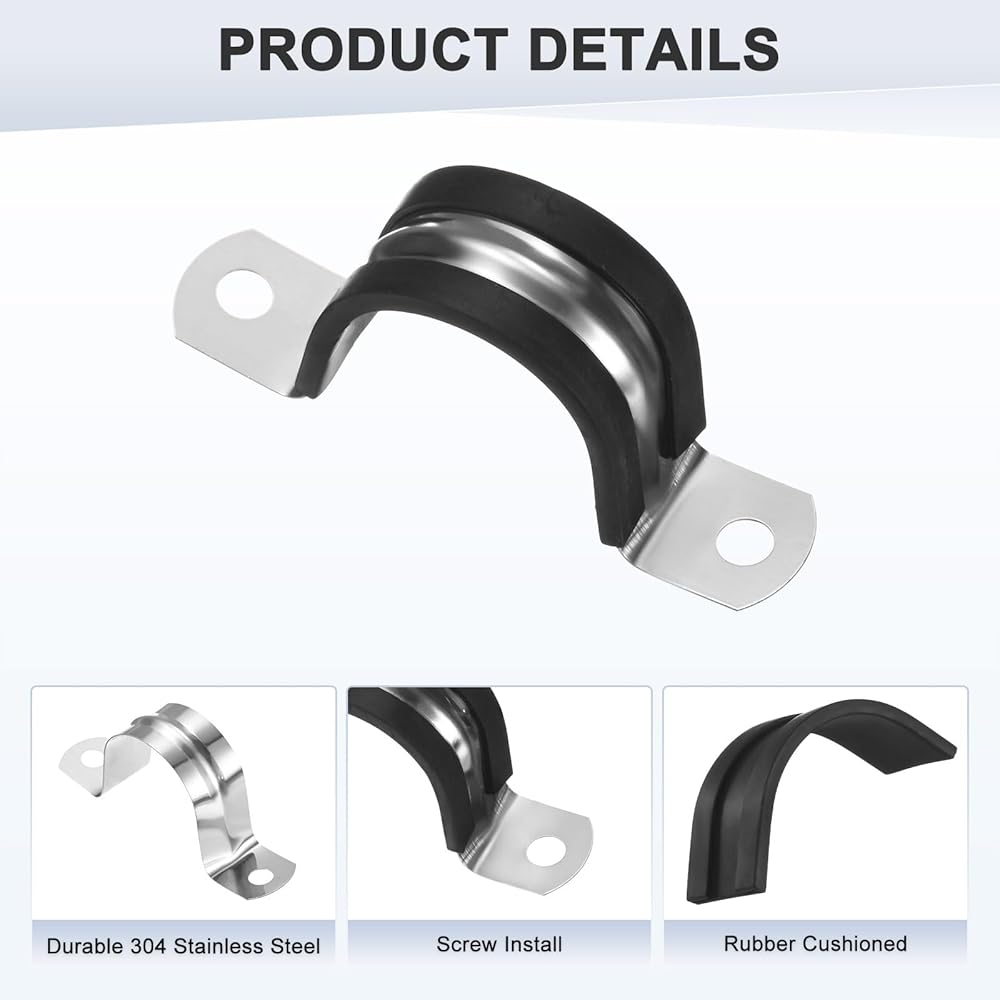 [Advantage] - Two holes cable clamp adopts a U-shaped design that closely adheres to the pipe wall, and is equipped with rubber gaskets to reduce compression, wear and vibration, achieving all-round pipe protection. The double-screw hole fixing design enables it to be firmly installed on various base surfaces such as walls and ceilings, reducing vibration and noise and ensuring long-term stability in industrial and daily use