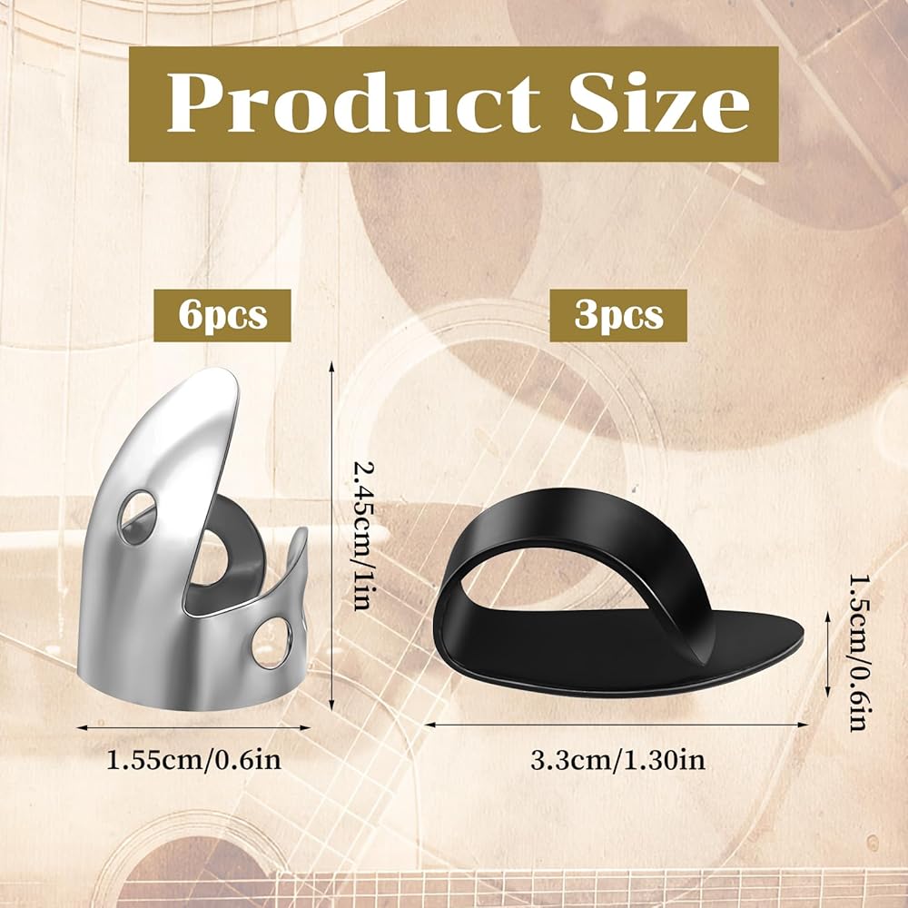 Designed for practice: These banjo finger picks are mainly applied to protect fingers from pain and sweat, banjo picks set making the sound of the instrument fuller and more realistic. Our banjo finger picks are practical for helping beginners or professionals to practice guitar and improving their performance