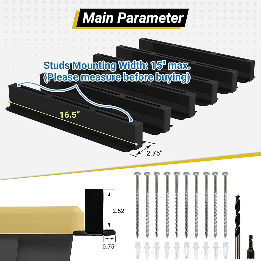 Expandable T-shaped Design: Our ceiling storage racks feature a unique T-shaped design. The garage ceiling storage hold more boxes if mounted horizontally, so you can buy an extra set for extra storage space ( Product Dimension: 16.6”L x 2.75”W x 2.8”H)