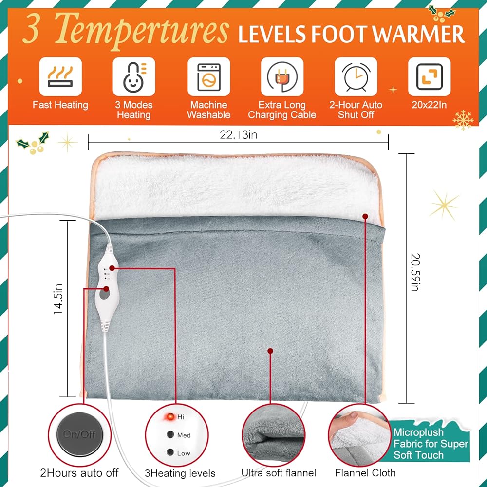 Heating Pad, Fast Heating Electric Heated Foot Warmers for Men and Women with 3 Heat Settings, Electric Foot Warmer Heating Pad for Back Pain Relief, Extra Large Heating Pad for Neck and Shoulder