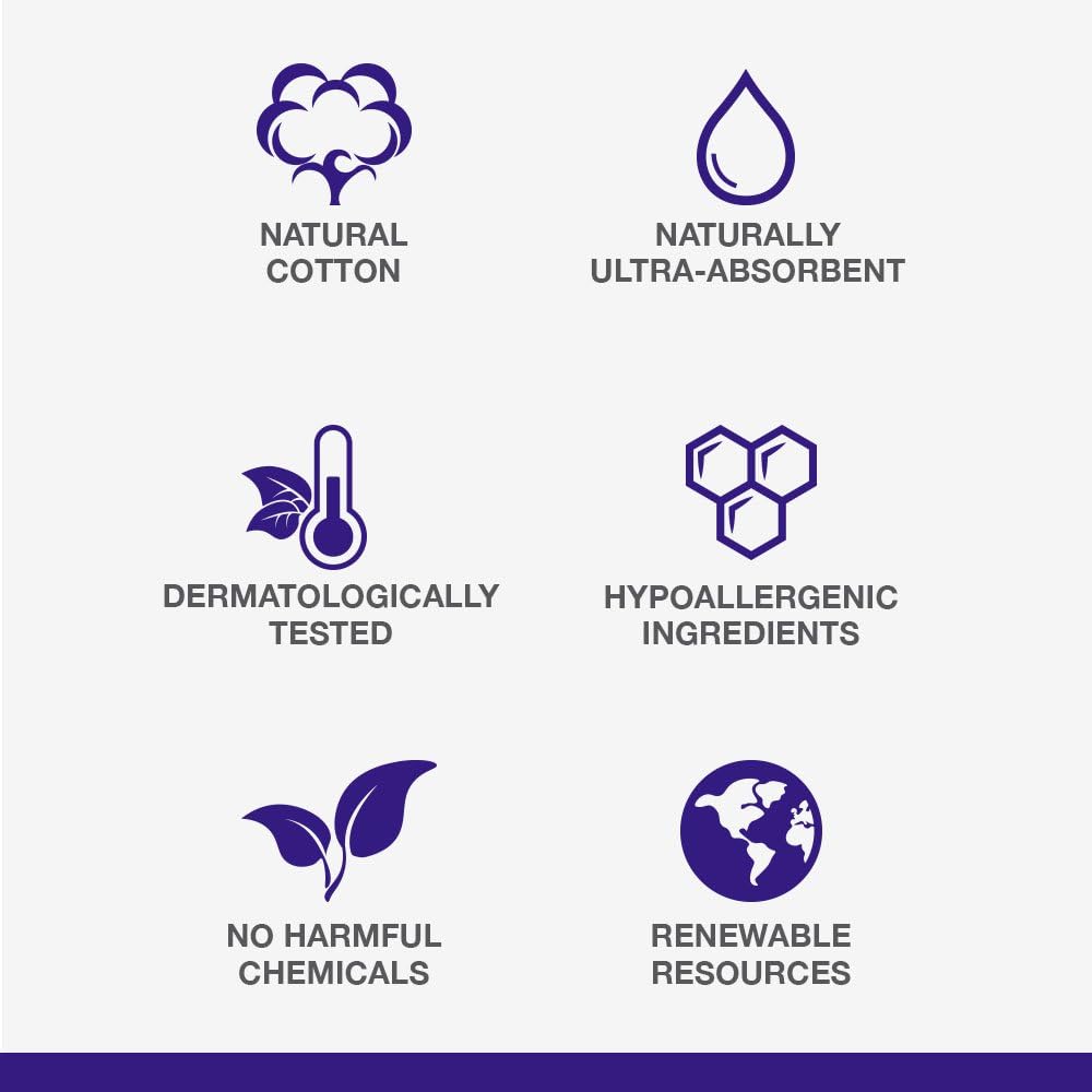 100% NATURAL COTTON TOP SHEET COMFORT – Our pads are made without chemicals, synthetics, fragrances, or dyes and our 100% natural cotton top sheet ensures that your body only comes in contact with the purest, irritation free ingredients.