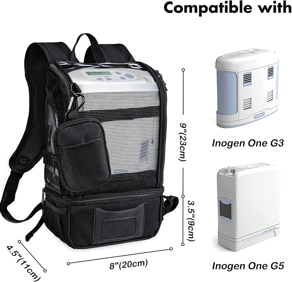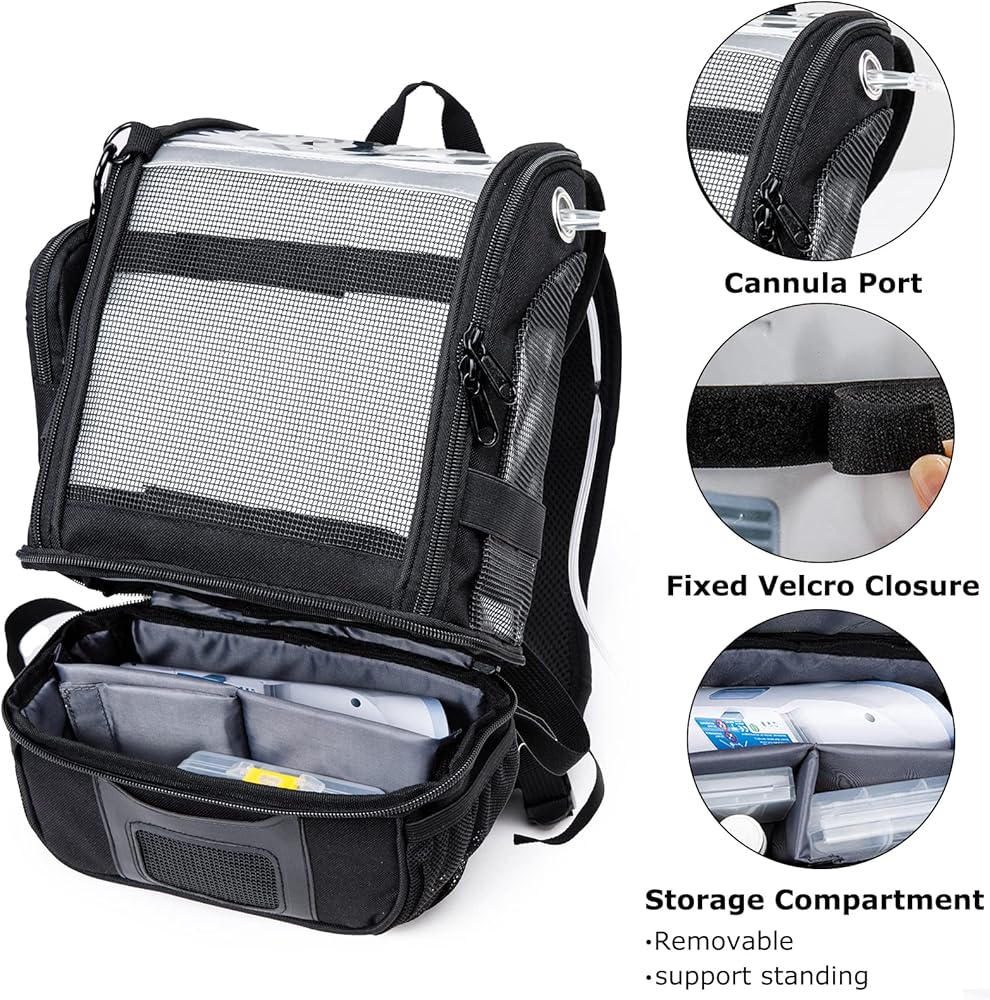 This portable oxygen pack, with padded, adjustable straps, and a padded back, this backpack offers stability and protection for your Inogen machines, while providing modern styling and superb comfort.