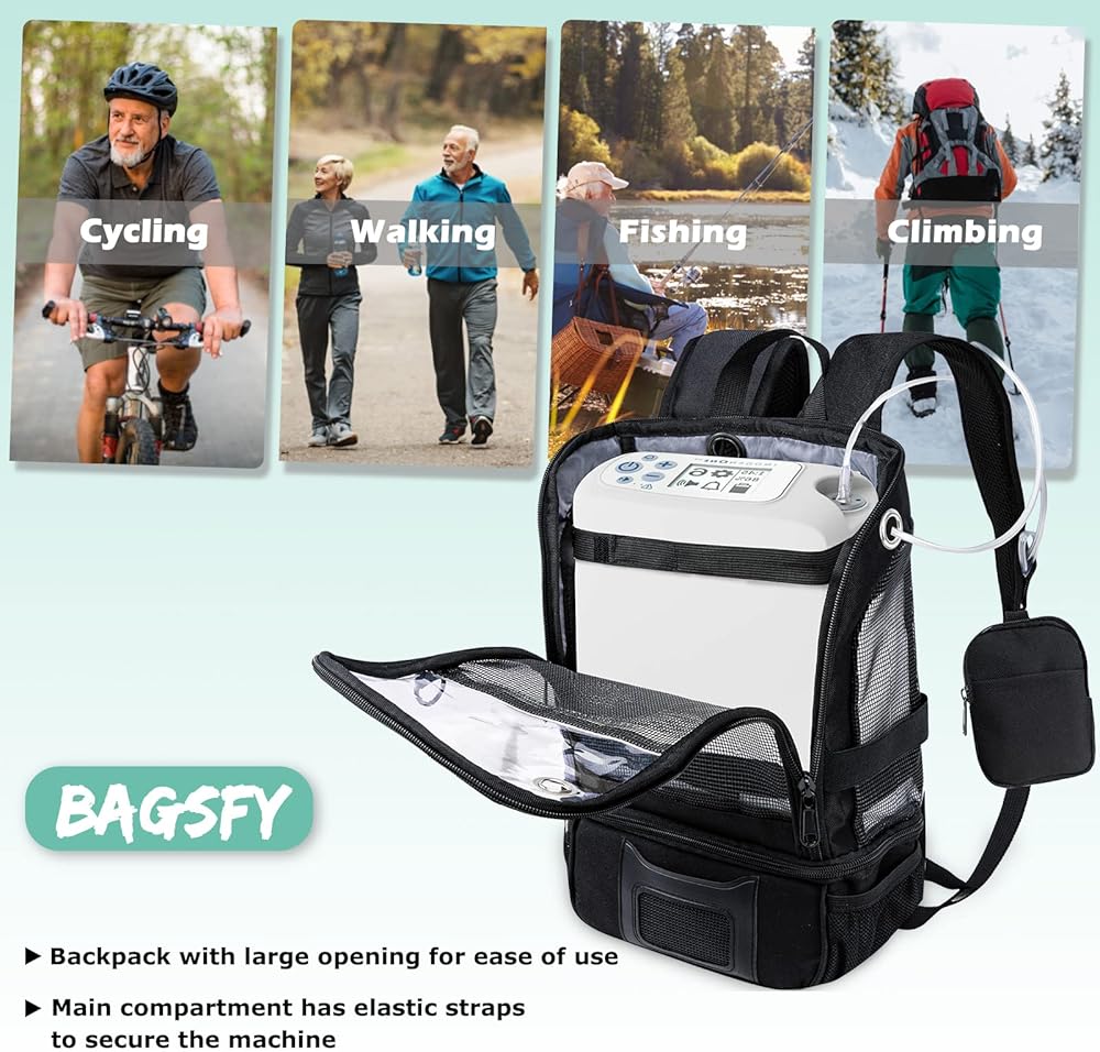 Whether you are resting indoors, or walking, cycling, climbing, golfing, fishing, etc., you can wear this oxygen concentrator bag to make it easier for you to enjoy.