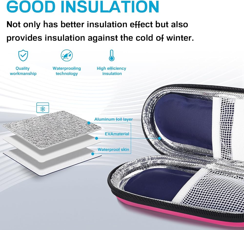 🎁🤞【Good Insulation】Liner is made of high-quality Aluminum foil, not only good insulation effect but also insulation against the cold of winter,can be easily cleaned. Keeping diabetic supplies in suitable temperature.