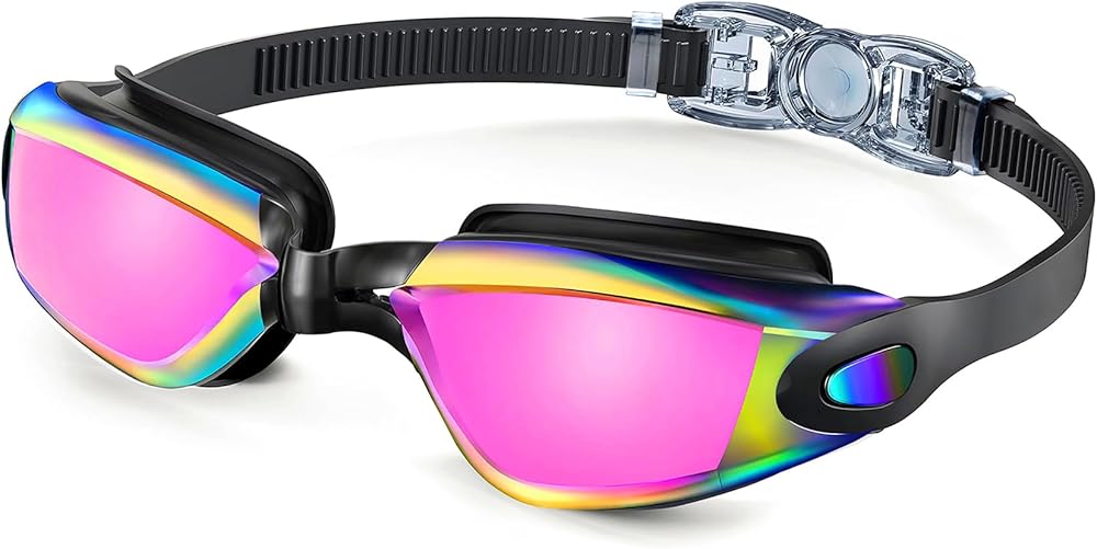 ONE BUTTON ADJUSTMENT: The goggles swimming adult features a quick -adjusting buckle, well-designed buckle makes the swim goggles for men easy to put on and take off, suitable for any head shape, won't pull your hair. The non-slip band ensures that the swim goggles adult women stay in place during swimming. Fashionable multi-coloured look for men, women and teens, its design will make you stand out in the crowd