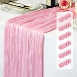Versatile Design For Various Occasions: The Pink Cheesecloth Table Runner Is Perfect For A Range Of Events' Decoration, Including Weddings Decor, Birthday Parties Decorations, Holiday Celebrations, And More. This Table Runner Complements Various Table Styles, Adding A Romantic And Rustic Touch To Your Decor.