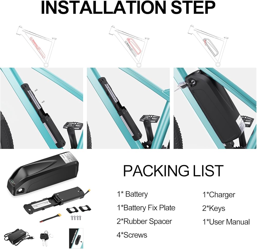 Useful Features : The integrated lock system safeguards against theft. The power switch can avoid wasting power . LED power indicator light can inform you charge on time. The battery pack includes a mounting bracket compatible with most water bottle screw holes on bike frames, allowing for easy installation and removal. Designed for hassle-free removal, enabling convenient charging at home or elsewhere