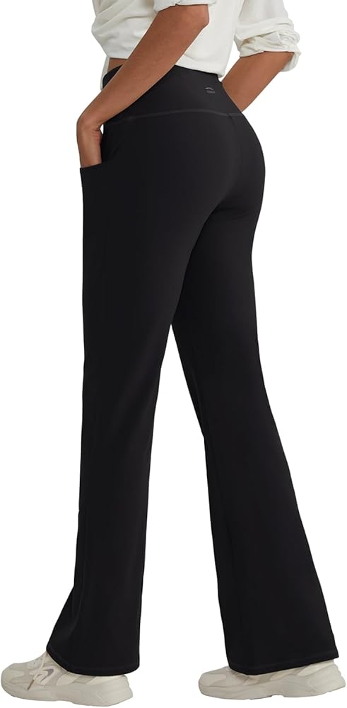 ✓BIG "YES" POCKETS - The high waisted yoga pants feature with 2 large side pockets and 1 hidden pockets. The flared yoga pants are strong to hold your valuable essentials separately like cash, credit cards, phone, etc. For example, when a cashier gives you a change, you only need to put it directly into the pocket. They are very convenient, aren't they?