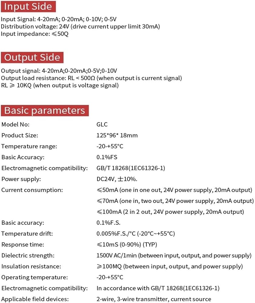 Output Signal : 4-20mA 0-10mA 0-20mA 0-10V 0-5V 1-5V