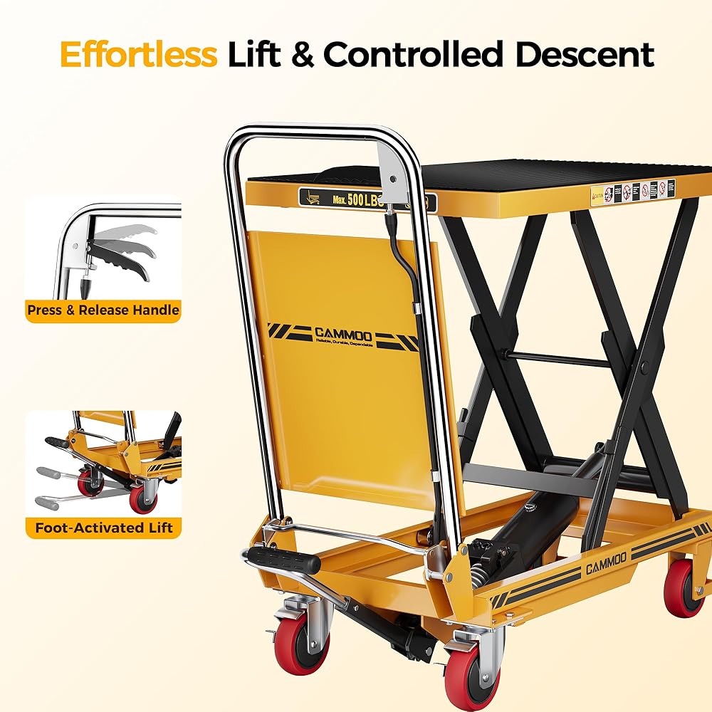 Foldable Handle: No more complicated installations! Our hydraulic lift table cart features a foldable handle and a quick-install foot pedal for effortless assembly. Set up in under a minute—just open to use and fold to store.
